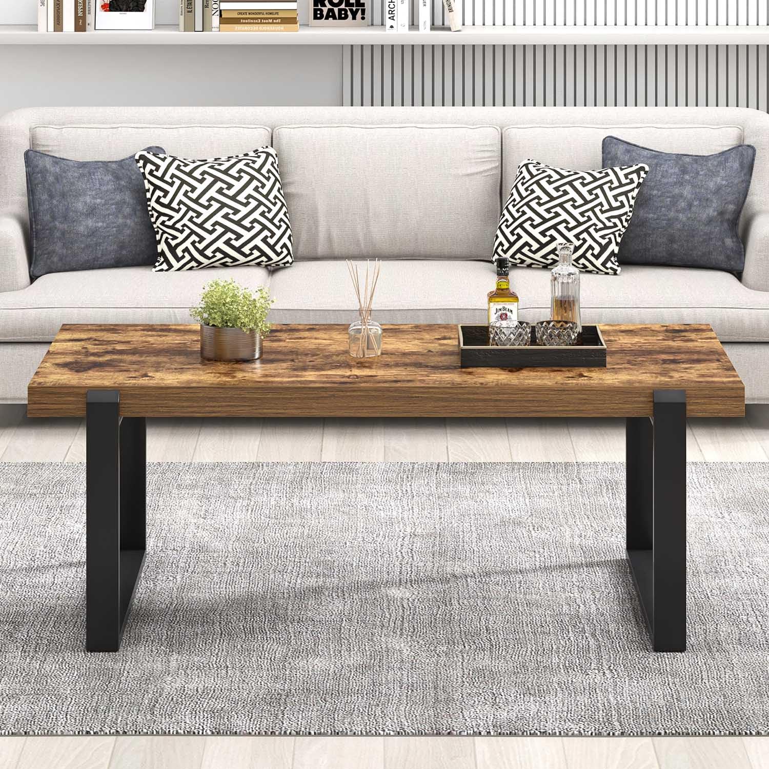 FOLUBAN 47" Modern Coffee Table – Rustic Brown Wood and Metal Industrial Rectangle Center Table for Living Room