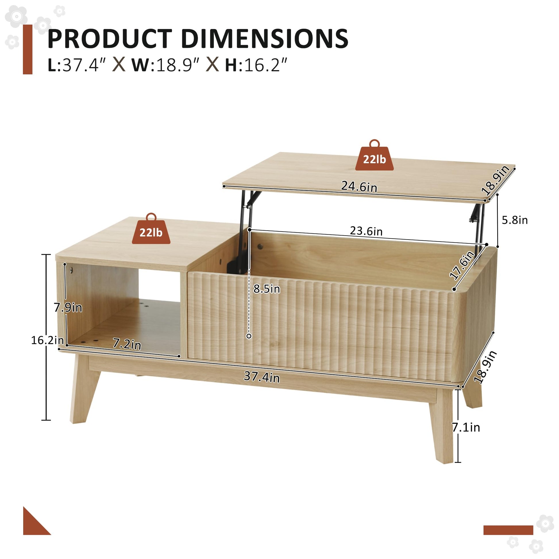 - LIFT TOP DESIGN: The wooden coffee table is equipped with an upgraded hydraulic gas strut lift top system, it ensures smoother, balanced motion, preventing slamming.It can be lifted to a height of 23.6 inches from the ground to create a comfortable workspace or dining surface while you’re sitting on the sofa.