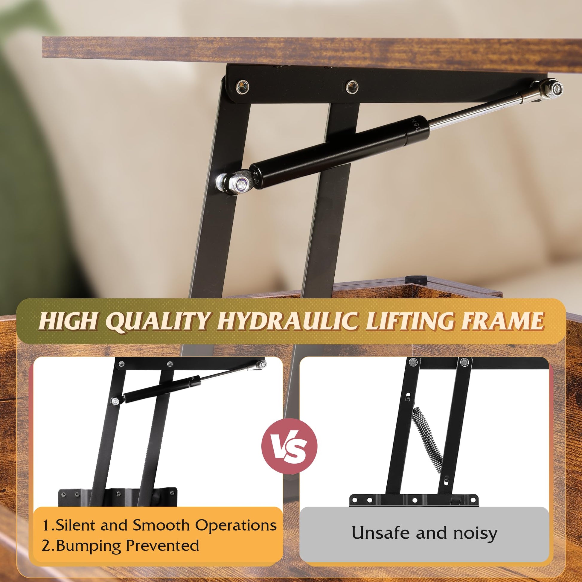 - 【Quality Lift Mechanism】The high-quality hydraulic lifting mechanism on this coffee table offers solid support, allowing you to effortlessly lift the top and lower it slowly and safely, preventing any accidental pinches for you and the kids while in use.