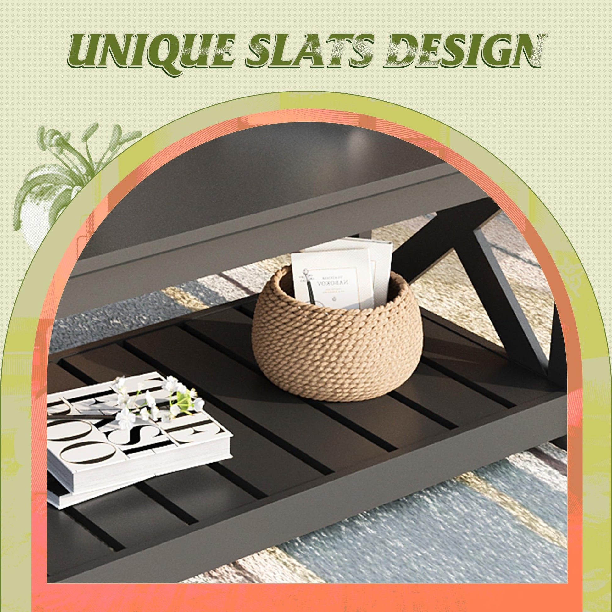 - 【Spacious 2-Tier Storage Space】The wide black coffee table top and slatted bottom shelf provide ample space for decor, books, snacks, or games—keeping your living area tidy and stylish