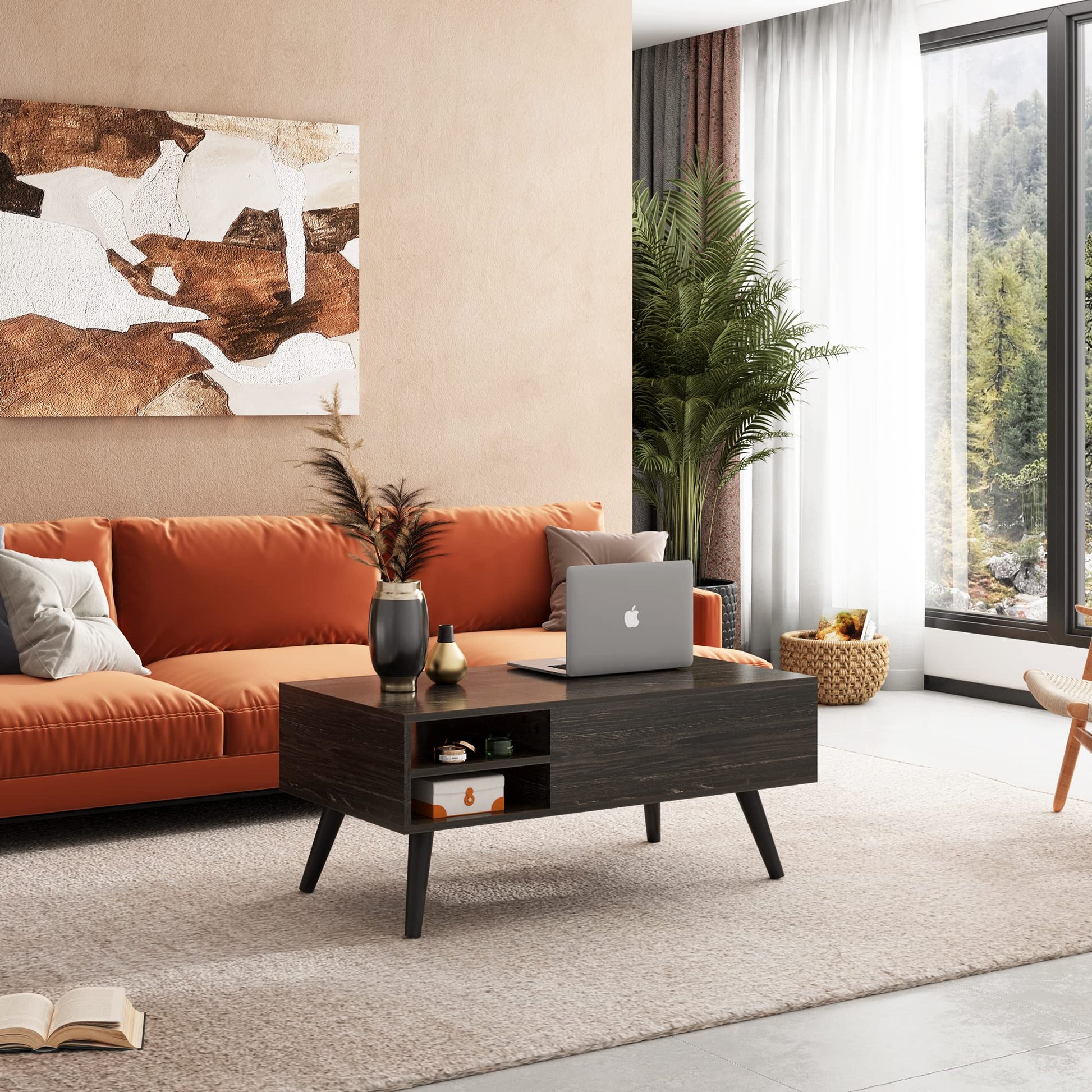 WLIVE Charcoal Black Wood Lift Top Coffee Table – Hidden Compartment & Adjustable Storage Shelf, Convertible Dining Table for Living Room or Office