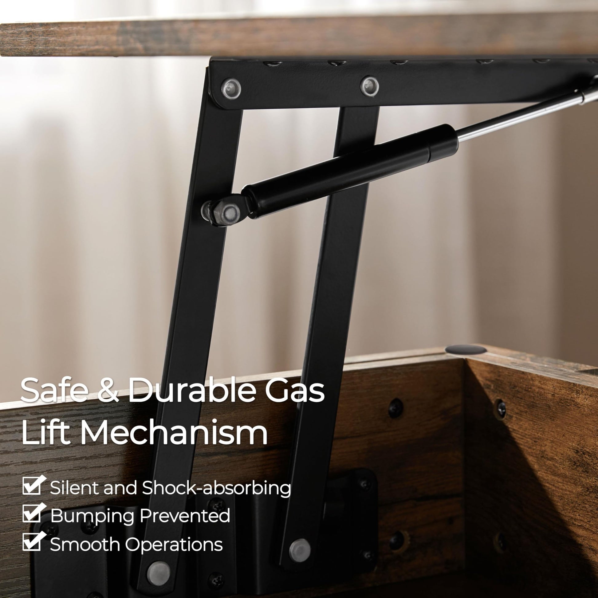 - Safe & Durable: Constructed from CARB P2 compliant MDF with water and wear-resistant veneer, this lift coffee table is safe for long-term use. The powder-coated metal spring lift mechanism ensures robust support of the top